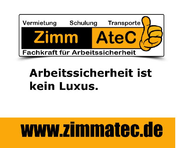 Die Fa. ZimmAteC bietet Schulungen & Unterweisungen für folgende Bereiche an: Staplerschulungen (Gebelstaplerschulungen / Flurfördezeuge), Hubarbeitsbühnenschulungen, Bagger, Kranführer & Anschläger uvm. Des Weiteren führen wir für Bus- & LKW-Fahrer die beschleunigte Grundqualifikation in unserem Schulungszentrum durch. Weitere Schulungen: Brandschutzhelfer, Einsatz von PSA gegen Absturz, Atemschutz (Isolier- & Filtergeräte), Motorsägengrundkurse. Weitere Kurse finden Sie auf unserer Homepage. In unserem großen Mietpark finden Sie für alle anliegenden Arbeiten und Aufgaben das passende Gerät. Von verschiedenen Staplern bis zur LKW-Gelenkbühne werden Sie bei uns fündig. Sie benötigen eine Fachkraft für Arbeitssicherheit (FASI) - gerne stehen wir Ihnen bei der Planung & Realisierung zur Verfügung. Für Fragen stehen wir Ihnen gerne persönlich zur Verfügung.