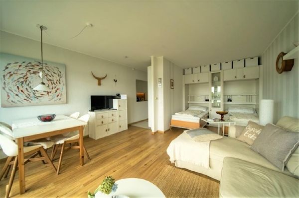 Die sonnige Wohnung liegt im 1. Geschoss zur Südseite (Fahrstuhl im Haus) und bietet einen herrlichen Blick auf den Binnensee. Die Wohnung ist komplett mit Geschirrspüler und WLAN ausgestattet. Eigener Parkplatz. Hunde nach Absprache erlaubt. Nichtraucherwohnung.