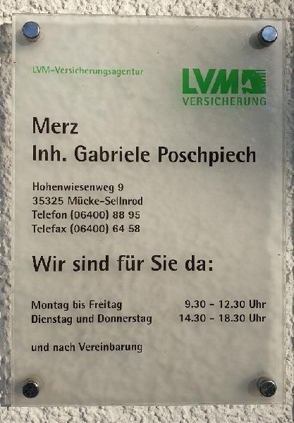 Ihr LVM - Versicherungsbüro Merz, Inhaberin Gabriele Poschpiech, berät Sie seit 60 Jahren kompetent, fair und ehrlich zu Ihrer KFZ-Versicherung, Haftpflicht, Krankenversicherung und vielem mehr.