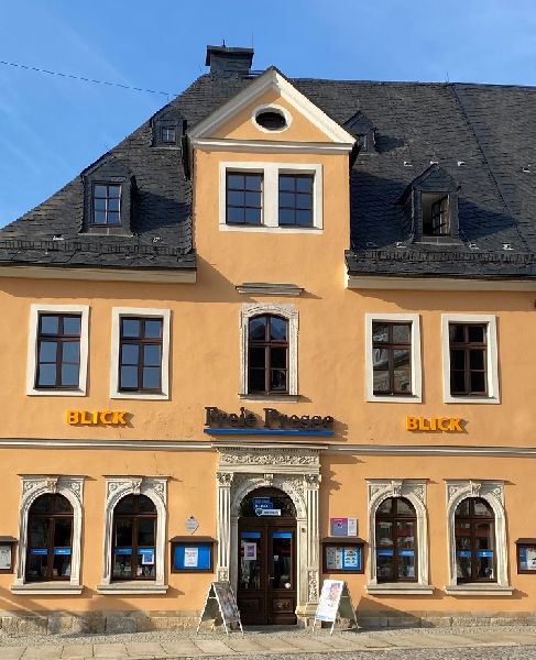 Im Erdgeschoss des Barbara-Uthmann-Hauses befindet sich unser Freie-Presse-Shop Annaberg.